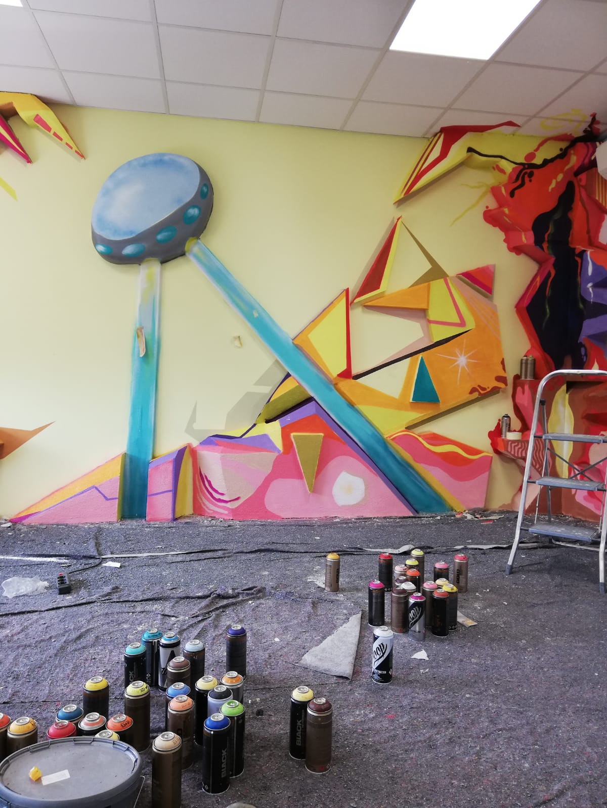 BASIC ist bunt: Das wollen wir mit einem neuen Wandkunstwerk in unserer Zentrale in Lünen beweisen. Das bunte Ufo, geschaffen von einem Stuckateur und einem Künstler, verbindet solides Handwerk und Visionen, Vergangenheit und Zukunft, familiäre Werte und Diversität.